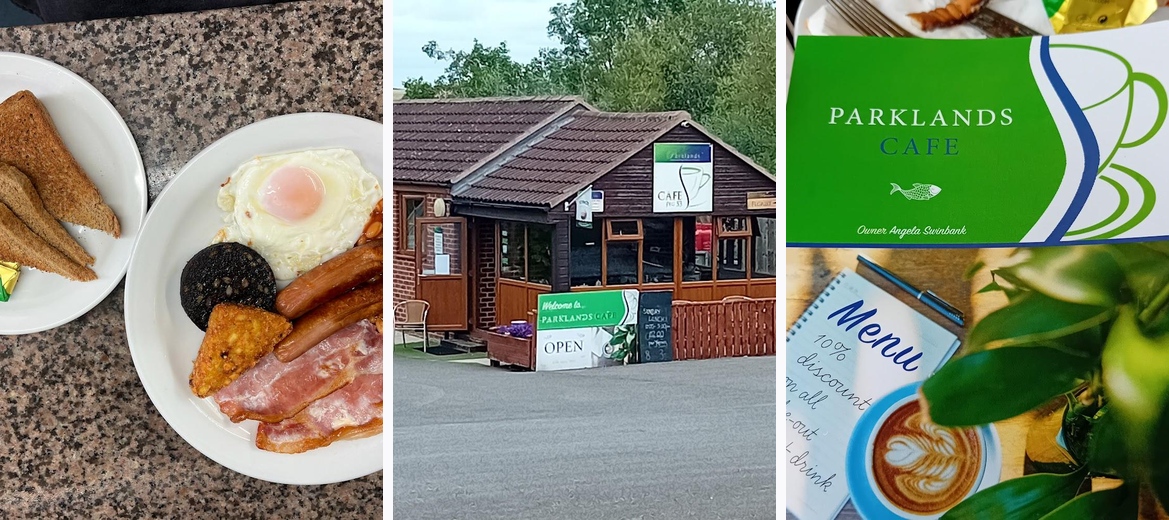 Parklands Cafe offers both indoor and outdoor seating, providing a lovely view of the nearby fishing lakes.